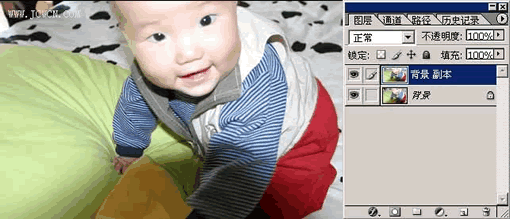 在我们的生活当中,拍摄的照片很难尽善尽美。下面这张可爱宝宝的照片,有一个很大的阴影,怎么把它去掉呢,下面大家跟我一起来。