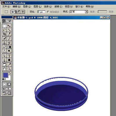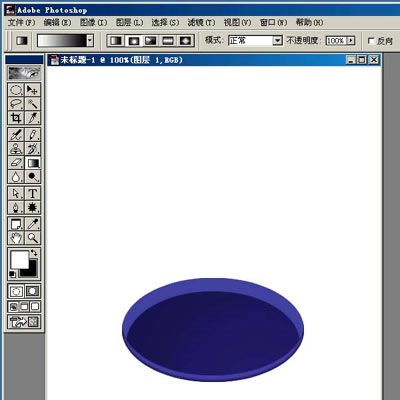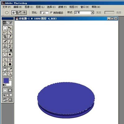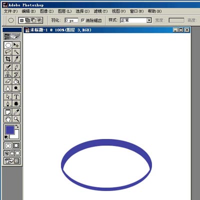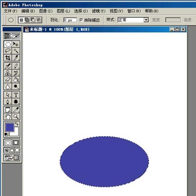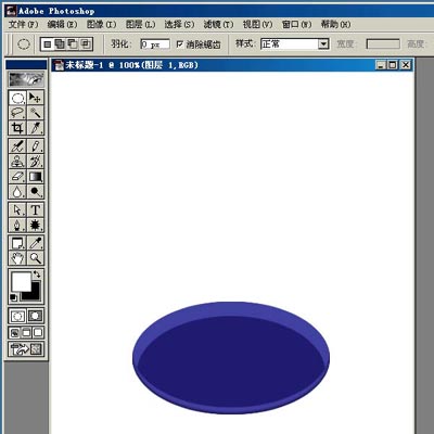 新建图层1,选椭圆选框工具,在下方画个椭圆,填充颜色。这里用蓝色(65/65/165),以下需要填充的都用这个颜色。(01)