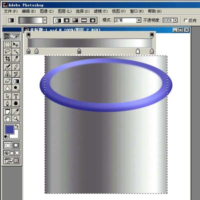 24.不要取消选择,新建图层2,选渐变工具,渐变色设为灰-白-灰,在选区内从右上至左下拉线性渐变。(24)
