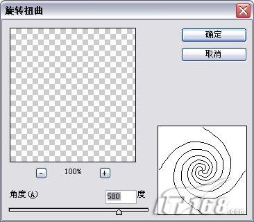 (12)执行【滤镜→扭曲→旋转扭曲】命令,打开“旋转扭曲”对话框,设置“角度”为“580”度,如图12所示。