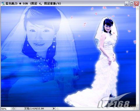下面笔者通过一个简单的实例为大家介绍如何设计并制作一个蔚蓝梦幻风格的婚纱照。最终效果如下图所示。
