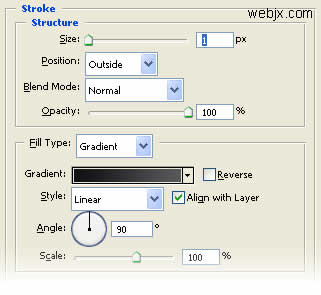 应用图层样式。渐变颜色为 #313332到 #46474a