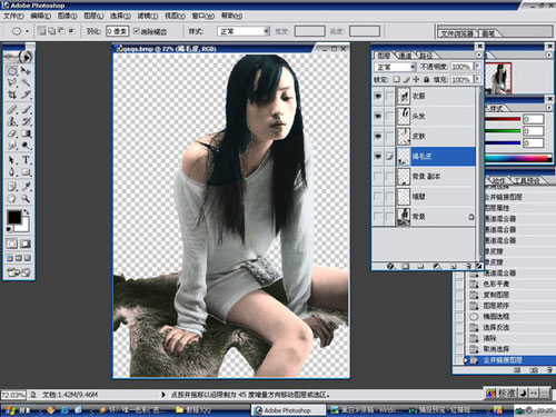 PHOTOSHOP给黑白MM图片填色,虽然是个笨法子,不过比较实用。先看一下最终效果