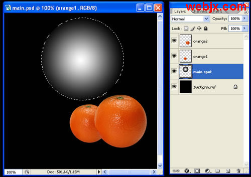 建新层,做一圆选区,进行渐变填充。