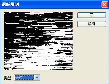 3) 滤镜 -> 象素化-> 铜板雕刻。在出现的对话框中设置类型为:长边 如图:
