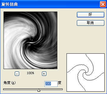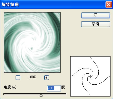 9) 滤镜 -> 扭曲 -> 旋转扭曲 而且设定角度为200。最终效果出现!!