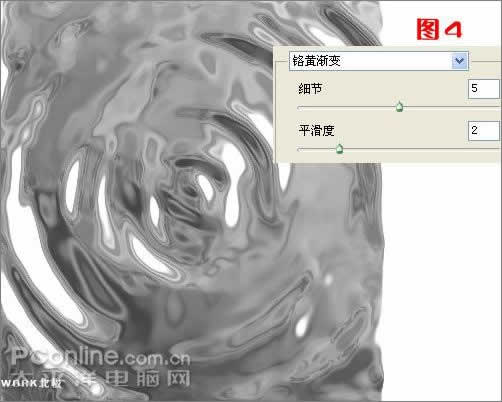 E:执行菜单-滤镜-素描-烙黄 细节为5,平滑为2。如图4。