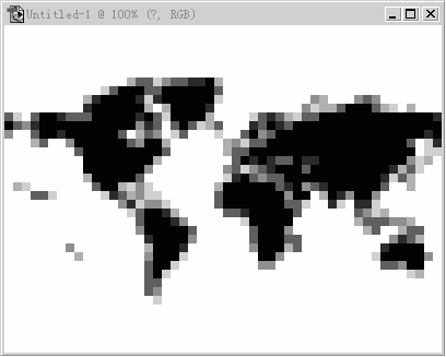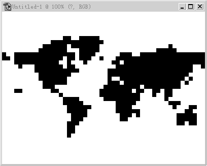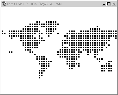 使用菜单中的“Layer”-->“Rasterize”-->“Type”(文字光栅化),将该文字层转为普通层。在该层的下方建立一个新的图层,填为白色,并将两层合并。这时就有了一个底色为白色的世界地图。然后就是最重要的一步:使用“Filter”-->“Pixelate”-->“mosaic”滤镜,在弹出的对话框中的“Cell size”参数设为先前建立的单个点阵图形的边长,这里将其设为8。点“OK”,这时世界地图就马赛克化了,但地图的边缘不是很清晰。