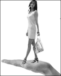 我们通过两个实例来掌握图像合成的方法。实例一达到的效果:人物站在手掌中 1. 在Photoshop中新建一个文件,然后打开手掌和美女所示的效果图1。