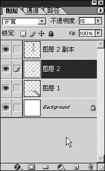 9. 将生成为隐影的图层作为当前图层,在图层控制面板上的“不透明度”栏里输入15(图3),现在阴影生成了,最终效果如图4所示。