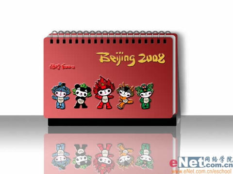 18、将福娃的图案拖入画面中效果如图20所示,并添加斜面和浮雕图层样式,台历最终效果如图22所示。