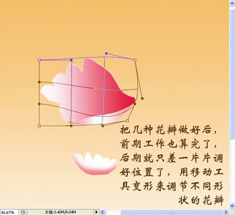 另一朵可以复制调色彩变形处理,叶子的做法和花相同,也是复制处理好位置。