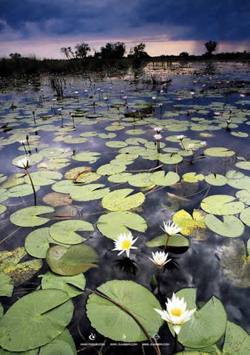 5.再回到先前打开的第二个图片,也就是莲花池的图片,用钢笔工具将下方那朵较大较清晰的莲花勾勒出来(图6)。将勾勒出的路径转换为选区后,将这朵莲花复制粘贴到贝壳的图象文件中,并置于图层的最顶层。