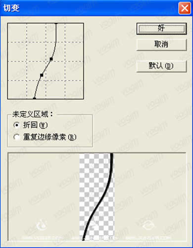 7.用矩形选框工具框选加长后的莲花茎部(图8)。执行菜单-滤镜-扭曲-切变,将切变轴调节至如(图9)所示。完成后效果如(图10)。