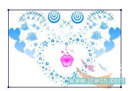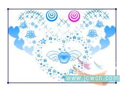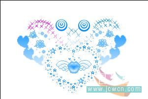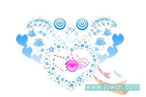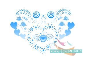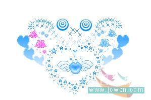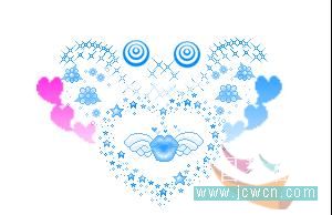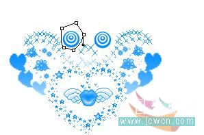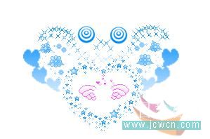 做到心形里有翅膀图案的时候,要注意一下,首先复制两个图层,用色相饱和度改变图案的颜色,两个图层的颜色都要改