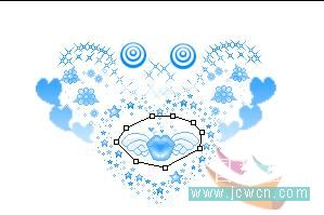 2.复制图层1,也就是图案层,用钢笔工具把第一个要变色的图案圈出来,按CTRL 回车将路径转换成选区