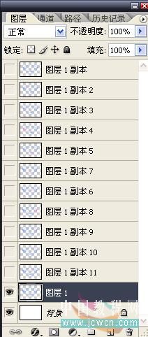 3.将图层1副本——图层1副本11的眼睛关掉, 只显示背景和图层1,进入IR开始制作动画。