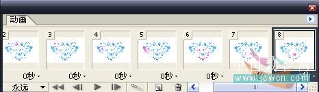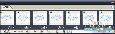 再接下来按顺序将余下来的几个图案复制到动画帧上,跟前面的步骤相同;一共是16帧动画