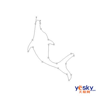 1、Photoshop中新建一个文件,选择工具栏中的钢笔工具(快捷键为P),勾出海豚的轮廓。这一步需要仔细调整,后面就比较轻松了。