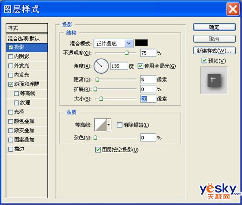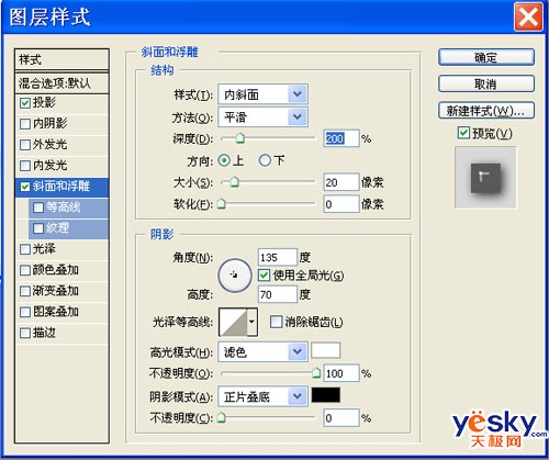 3、给海豚添加玉石效果。在图层面板双击海豚图层调出“图层样式”对话框,勾选“投影”及“斜面和浮雕”,具体设置如下: