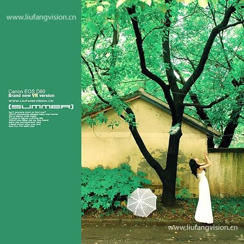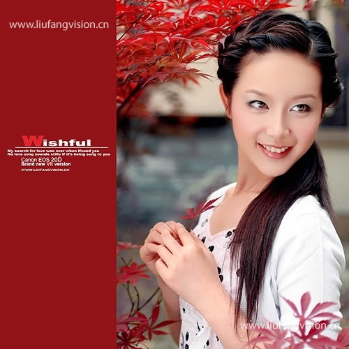 再看这张,树叶,人像的肤色,红或洋红色在照片在占了很大的比例,所以刘方会选红色系的颜色搭配