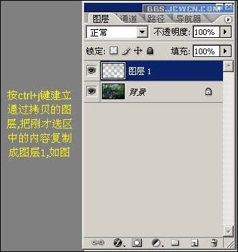 四、按Ctrl+j键建立通过拷贝的图层,把刚才选区中的内容复制成图层1,如图