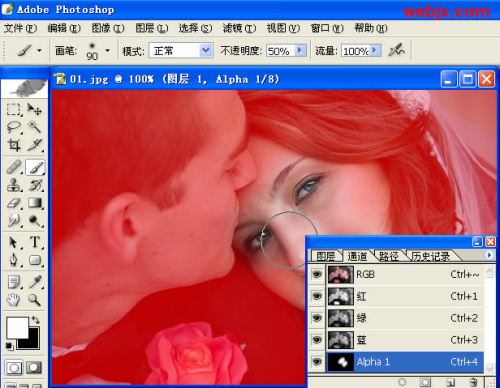 切换到Photoshop通道面板,新建立一新通道,设置画笔如下,然后用鼠标点RGB通道前面的指示器,之后使用画笔把需要显示的焦点绘出来,在绘制过程中可以调整笔刷的大小。