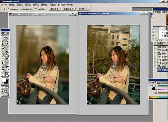 看到这里相信聪明的你已经知道下一步该做什么了,那就是用 Photoshop 将第一张照片中的人物或者**主体拼合至背景模糊的照片中去。这一过程其实十分的简便,考虑到并非所有数码相用户能够熟练地使用photoshop,故我在这里简单描述一下,即使完全没有photoshop使用经验的人也能够在几分钟内做好。