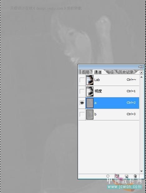 1.Phtosohop中打开图片,先做个AB色,图像—模式—LAB色,来到通道面板,选择a通道,按CTRL A全选,CTRL C复制,点击b通道CTRL V粘贴,CTRL D取消选区,然后回到RGB颜色模式;