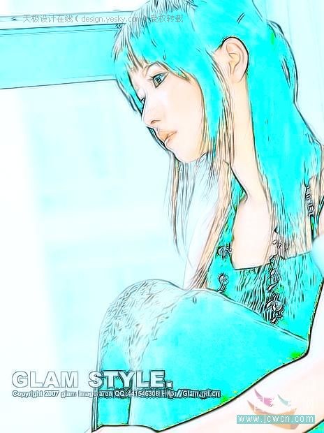 最后整调曲线,收工!你可以加一些漂亮的笔刷做些点缀,看起来是不是很像手绘呢,呵呵!