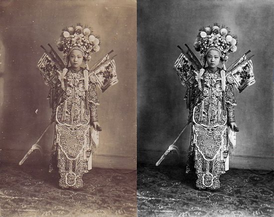 修复好的图有点灰灰的,怎么办呢?看下面的: