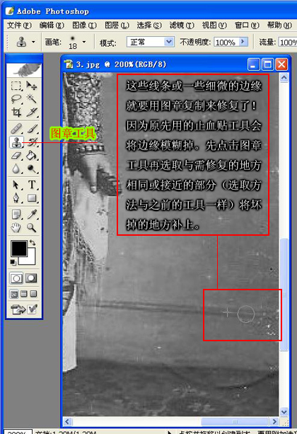直接用图章做出来不好,会有痕迹,用止血贴补的地方他能自动按照周围的色彩或黑白度来调节所补的地方的颜色或黑白度,不会出现补的痕迹。
