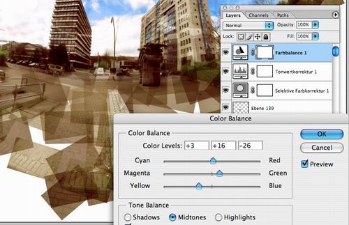 终于全部拼好了,最后再做一些整体的颜色、对比度和曲线调整。不要觉得那些半透明凌**叠在一起的图片很难看,这正是我们所追求的效果,它让你把视觉延展开的同时又突出了处于整体画面中央的物体。当然,拼图的过程也是发挥创意的过程,拼得一丝不苟的作品并不一定就是好作品,而拥有拼合不完全重影的作品也不一定差,有时候我们恰恰需要重影来制造画面的戏剧性效果呢。