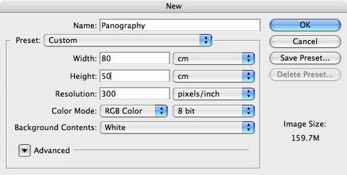 ctrl+N,在photoshop中新建一张尺寸足够大的画布。