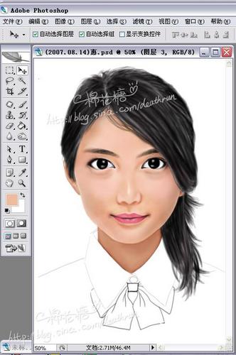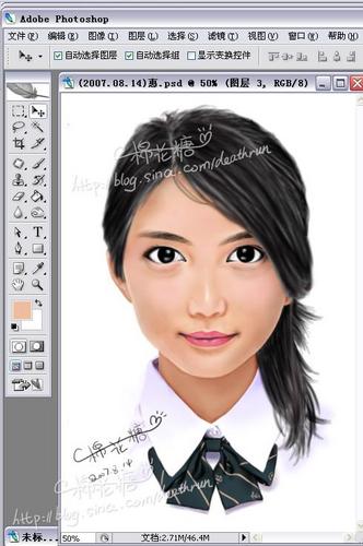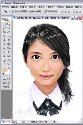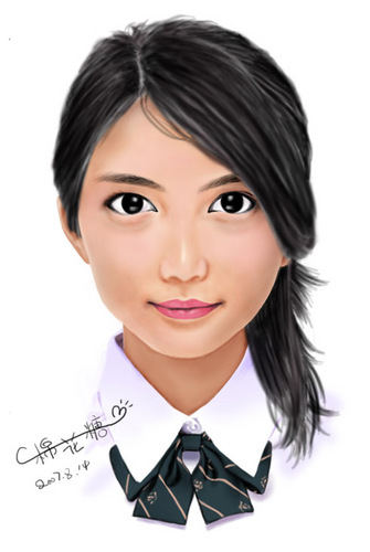 8.运用加深、变浅、海绵工具画出立体感,注意脸轮廓的明暗交接线是体现立体感重要的一步,还有很多看起来没有明暗变化的地方其实是有变化的,细心是这一步成败的关键。接着擦掉多余的线稿,进一步调整(恕我省略过程……这实在是一个痛苦的经历……)