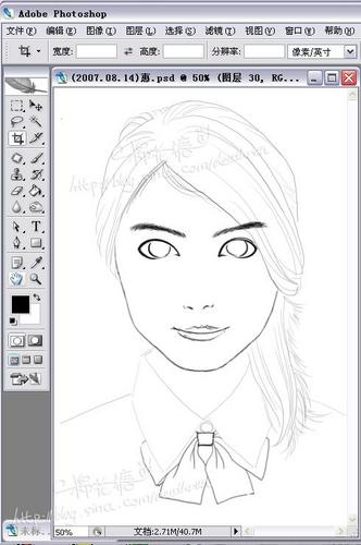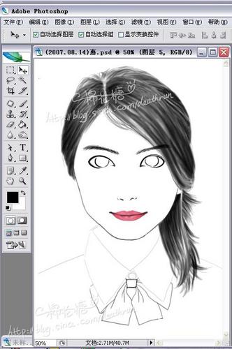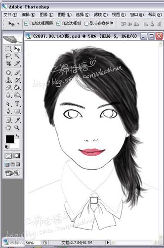 5.分片画出头发,为了显得整齐,笔划的方向一定要一致(其实我偷懒了……看别人都是一根一根细细的画,我就一笔带过了……但那样会死人的……)
