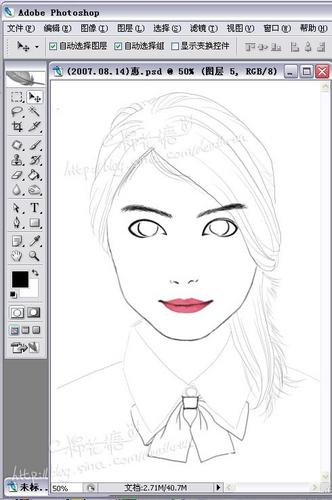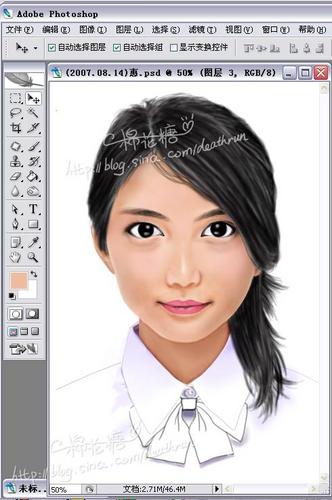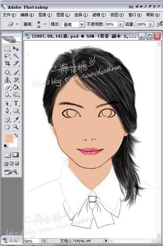 9.怎么样?看起来还是有点怪怪的吧?那我们来进一步修饰肤色,用粉红色给她扑扑脸蛋,怎么样?像不像化妆前后的人?^口^