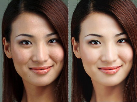 一般的磨皮方法,皮是磨光了,毛孔也没了,象塑料娃娃,最偷懒的就是Neat Image了,方便到是方便,不过磨的象是大肉蛋。关于磨皮最高级的就数贴皮法,但步骤复杂,和重画一张脸没多大区别,总结了一套相对简单实用的保留毛孔磨皮法。