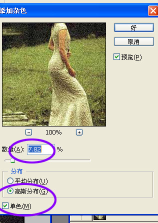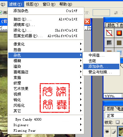 2.执行菜单“滤镜--杂色--添加杂色”。