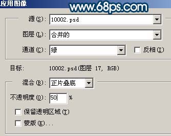 > 图像 > 应用图像,参数设置如图13,效果如图14。