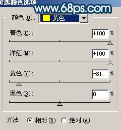 11、创建可选颜色调整图层,参数设置如图15,16,效果如图17。