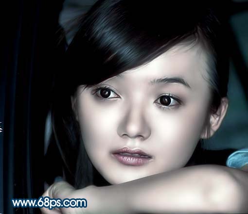 本教程的原图有点曝光过度,脸上也有很多杂点。不过五官部分还是比较清晰的,处理的时候只要磨下皮基本上就能恢复正常。如果需要增强质感,还需要整体去调色。