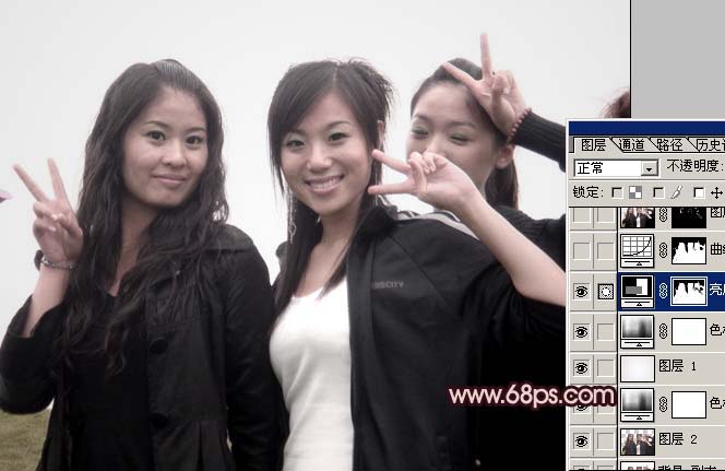 4、创建亮度/对比度调整图层,参数设置如图6,确定后只保留人物部分,其它地方用黑色画笔擦掉,效果如图7。