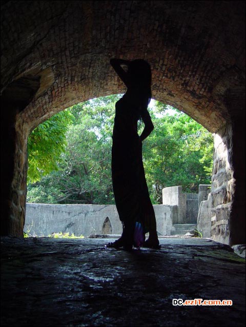 我们先来看白天里的人像剪影拍摄。像上面这张照片,人物处于洞穴出口,主光源自洞穴之外、人像之后射入,形成一逆光的情况。由于拍摄主体和后面的场景,曝光值差距在2个EV以上,我们只要以背后的场景为测光的依据,很容易便可以拍出剪影效果。