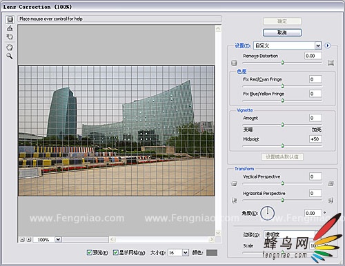 镜头校正功能!一分钟轻松消除镜头畸变  在观察区,我们可以放大图像进行仔细观察,而且还可以显示网格以供参考。