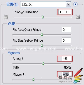 对于四周黑晕, 我们只须拖动第二、三条滑块移动即可。所有的调整效果都会实时显示在观察区中,所以大家完全可以非常轻松地进行操作。