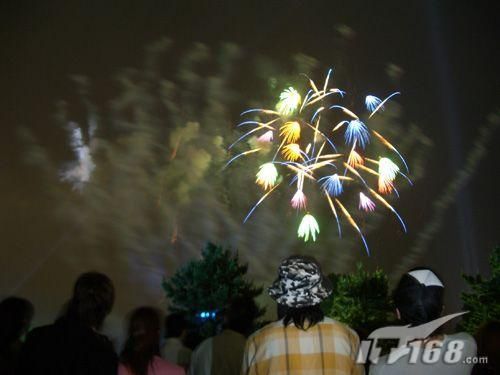 第二张照片是使用卡西欧的EXILIMZ40的“烟花模式”拍摄,快门速度为2秒,光圈为F2.8。这张照片就有些过亮了,连礼花爆炸后残留的烟也全部拍了下来。