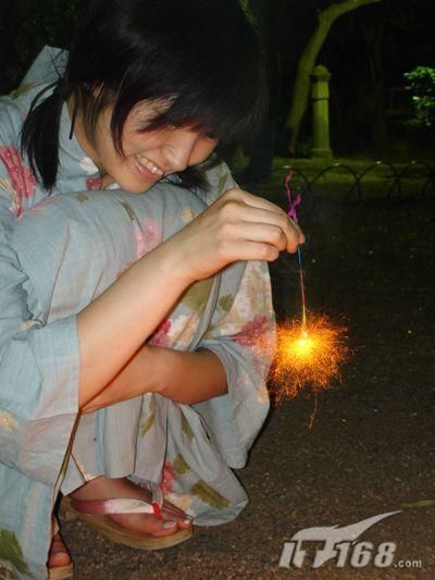 第二张照片关闭了闪光灯,一目了然,手持小烟花的美丽虽然被完美地记录了下来,但是重要的人物却被烟花的光照得全身通红。虽然说这真实地记录了当时的气氛,不过画面整体较暗,看上去不那么漂亮。这张照片快门速度是1秒,光圈F2.8。虽然不同的相机在这样的情况下计算出的快门速度会有所不同,但是在不使用闪光灯的情况下,想拍出漂亮的照片还是比较困难的。