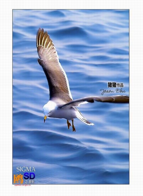 这样的片子就最好照的,把焦点对准海面上休息的海欧,构好图,等着,它一动就按快门,OK,姿态大多很好,95%成功率。 (只是有的时候可能要等上数分钟,甚至10多分钟,回家先好好练习端砖头吧,不然4斤多沉的机器可有的端了,呵呵。) 快门:1/1000s 、曝光:F2.8、 ISO 100、 焦距:340mm 、自动白平衡,自动对焦、镜头:SIGMA70-200/2.8,海边手持。