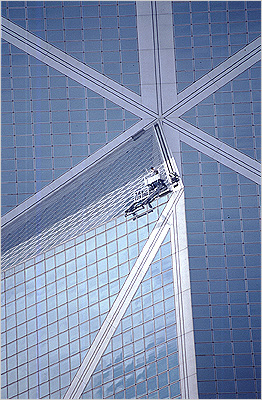 交叉线/对角线实际上又是“黄金分割”的另一形式,其基本思想是提供了一条指引你视线的引导线,较为理想的是某两个边角之间的连线。传统的方法认为左上角是最好的起始点,因为大多数人习惯从这里开始浏览一幅图画(译者注:这一观点其实很多人看法不同)。但这种对角线如果是单一的直线往往会很平泛而令人厌烦,所以总要在图中有某种点缀(如图G)。 图F中出现了一个多条斜线集聚的焦点,让观众的眼睛可以多方向地沿着引导线浏览而使画面生动有趣。
